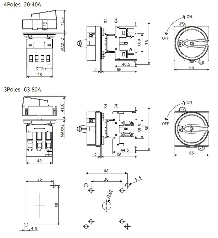 Переключатель изолированный переменного тока 4P In:80A Черная ручка |