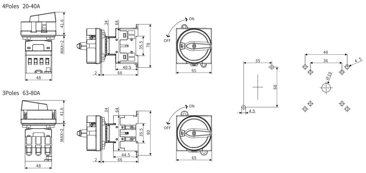 Переключатель AC изолированный 2P In:80A Черная ручка |