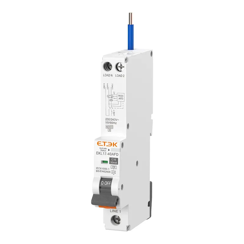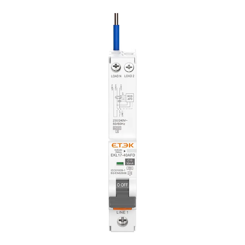 Устройства EKL17-40AFD представляют собой одномодульное устройство, которое подходит к существующей системе шин существующей компоновки. Устройство обеспечивает защиту от сверхтока, короткого замыкания, утечки на землю и дугового замыкания в одном устройстве и доступно в вариантах B и C Curve. Оно может напрямую заменять RCBO в существующих потребительских блоках.