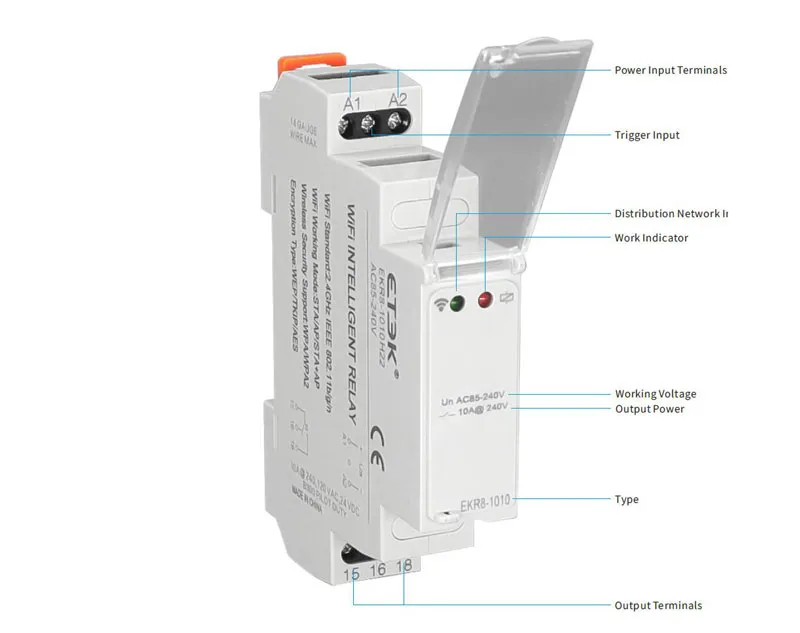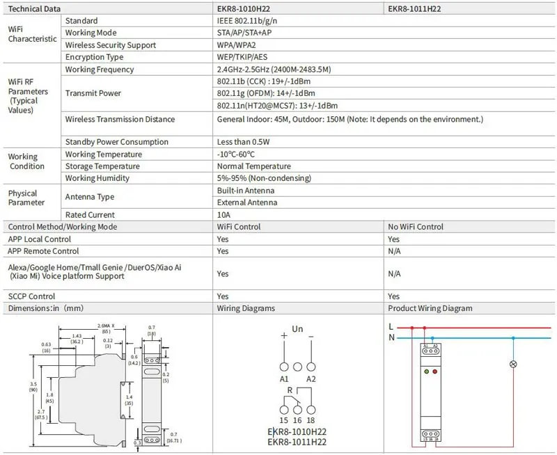 | EKR8-1011H22 | Wi-Fi интеллектуальное реле управления SPDT внешняя антенна 85-240 В переменного/постоянного тока 10A |