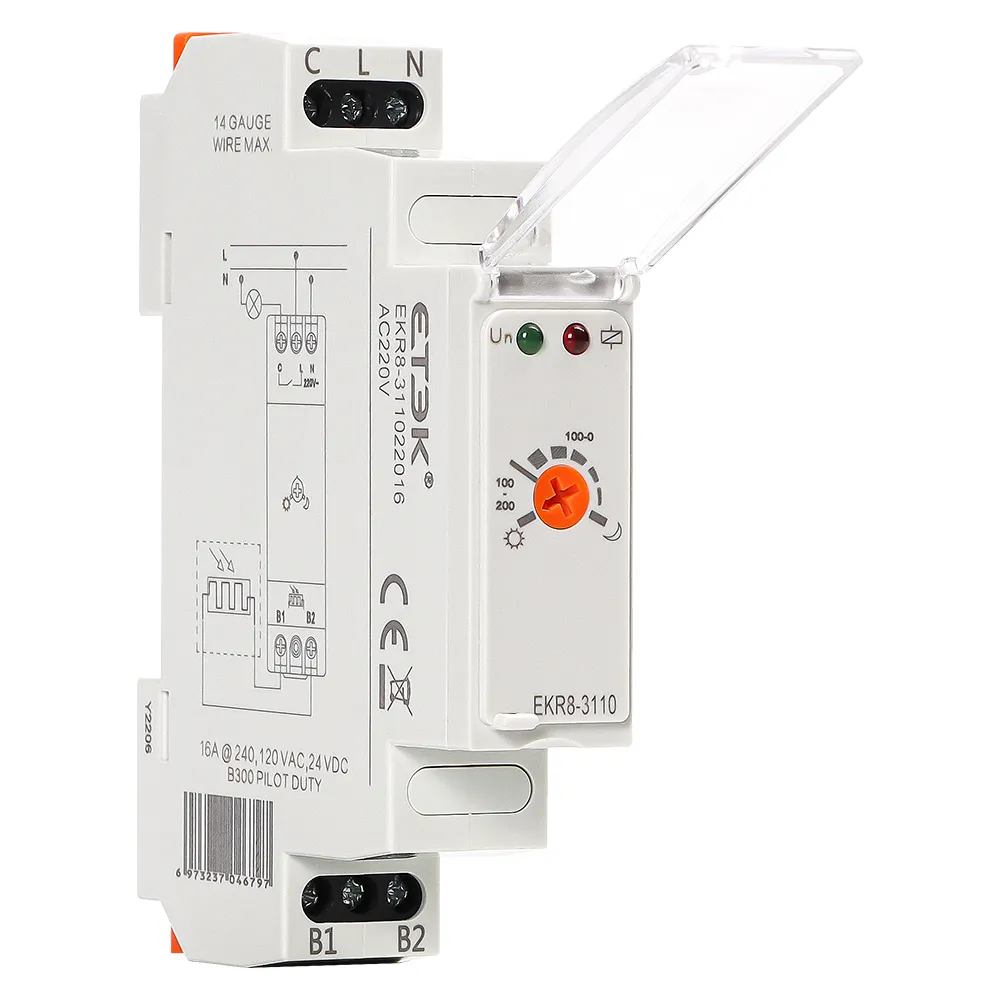 EKR8-3 содержит два типа изделий: выключатель, активируемый светом, и таймер для лестничного освещения.