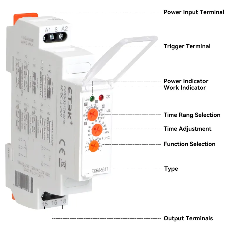 Реле времени представляет собой блок автоматического управления, который может быть объединен с различным другим электрическим оборудованием для достижения автоматического управления рабочей цепью. По истечении заданного времени выходной контакт будет замкнут или разомкнут, что позволит конечному электрическому оборудованию автоматически запуститься или остановиться.