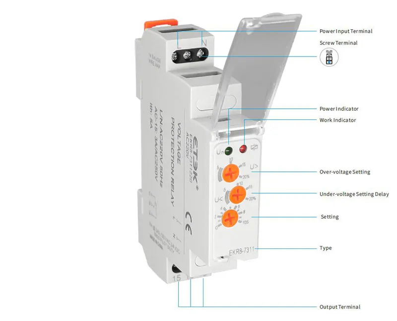 Реле защиты напряжения 0 ручка SPDT однофазное 415 В переменного тока |