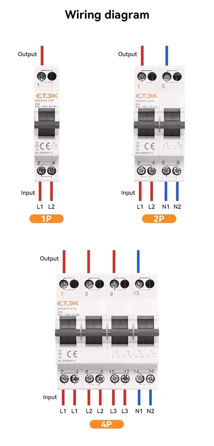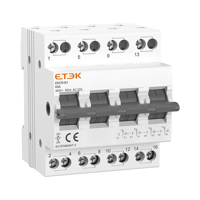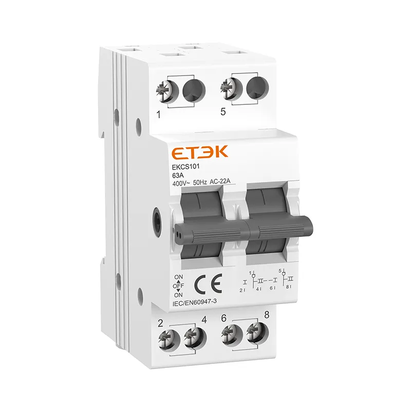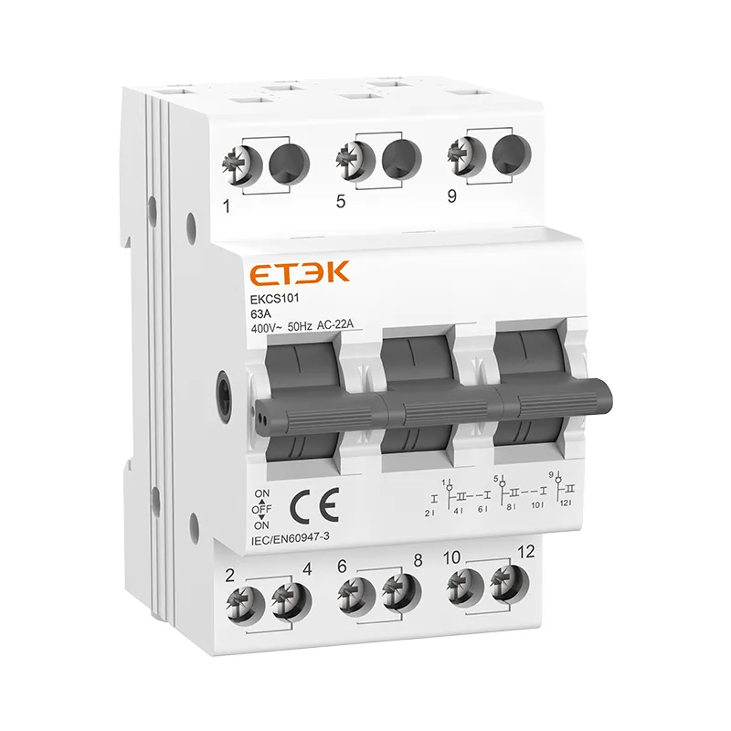 Реечный двухпозиционный выключатель изоляции преобразования мощности EKCS101 имеет четыре функции включения, выключения, преобразования и изоляции. Он может свободно включаться и выключаться между двумя нагрузками, переносимыми группой линий, или двумя источниками питания. Он используется для включения-выключения и переключения между ними, используя установку на стандартную рейку DIN (35×7,5), корпус изготовлен из литьевого формования PA66, с высокими огнестойкими характеристиками, это идеальный продукт, который необходимо использовать для переключения, открытия и закрытия в промышленном оборудовании и цепях. Максимальный ток может достигать 40 А, и его удобно и безопасно устанавливать и подключать к направляющей.