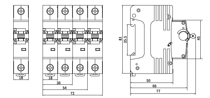 ● Номинальное напряжение: 1P(250VDC), 2P(500VDC), 4P(1000VDC)