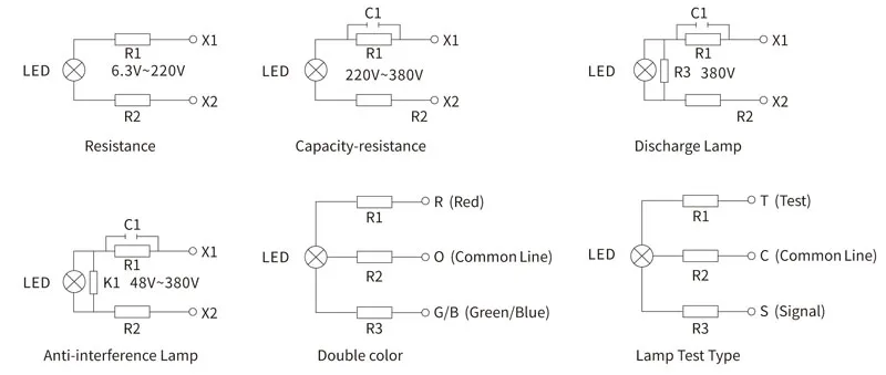 Светодиодный индикаторный светильник Тип теста 22 мм Белый 380 В переменного тока |