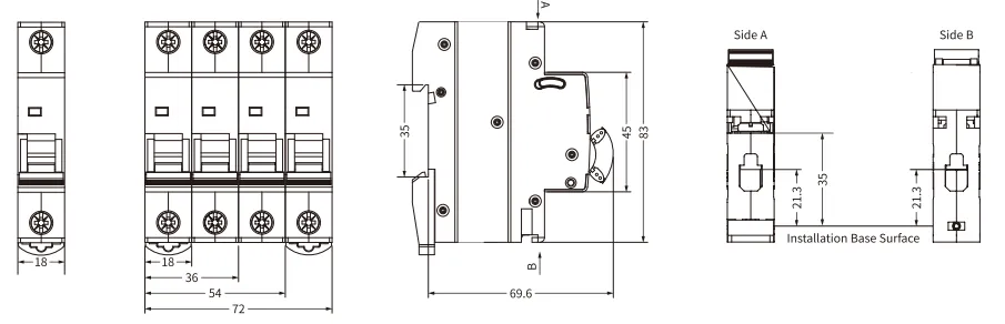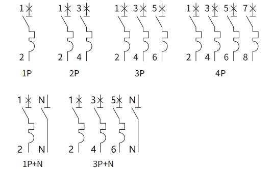 ● Количество полюсов: 1P,2P,3P,4P,1P+N,3P+N
