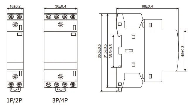 ● Номинальное рабочее напряжение: 250 В, 1P(1NO,1NC),2P(2NO,2NC,1NO+1NC)