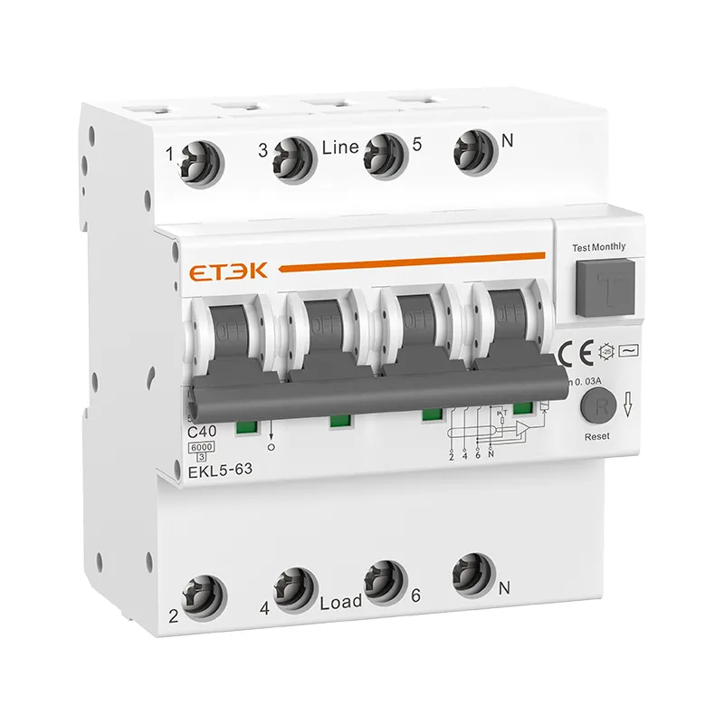 Устройства защитного отключения серии EKL5-63 с диапазоном защиты от сверхтоков обеспечивают полную защиту как людей, так и электроприборов, поскольку они предназначены для автоматического отключения электропитания в случае перегрузки, короткого замыкания и утечки на землю.