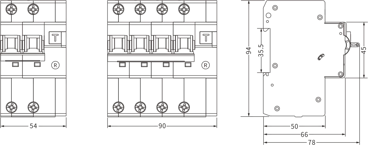 RCBO размещается в трех- или пяти DIN-модулях, поэтому его проще устанавливать, чем распространенное решение MCB + дополнительные блоки.