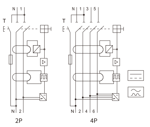 2P(1P+N), 4P(3P+N), N-полюс слева
