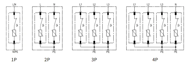 | Количество полюсов | 1П | 2П | 3П | 4П | 1P+NPE | 3P+НПЭ |