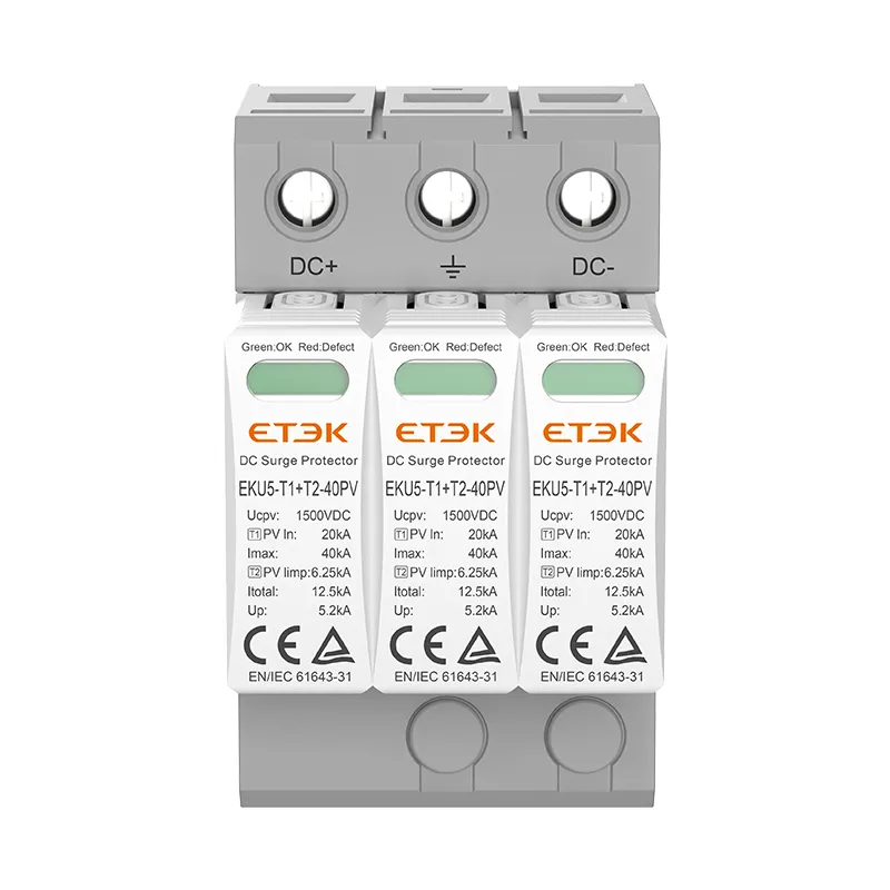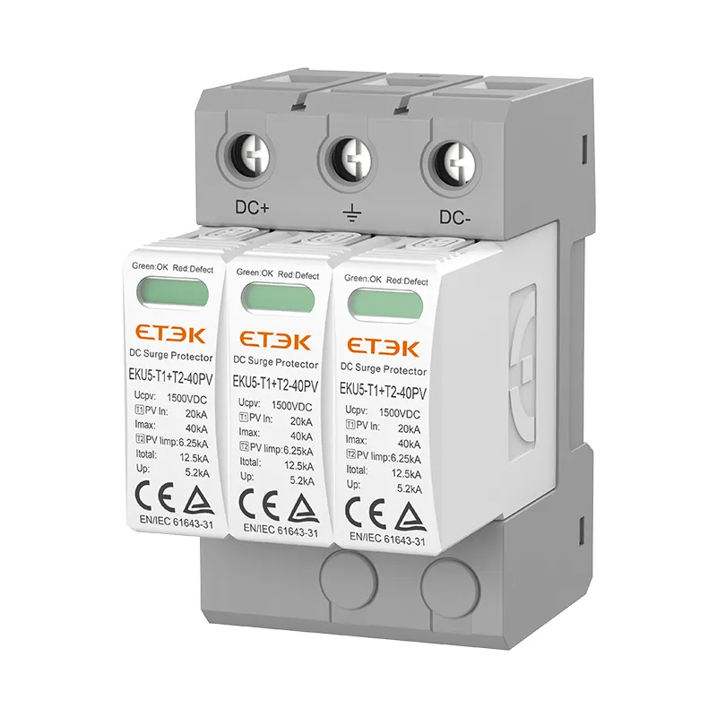Серия устройств защиты от перенапряжения постоянного тока EKU5 T1+T2 предназначена для использования в фотоэлектрических (PV) приложениях до 1500 В. Эти устройства защиты от перенапряжения (SPD) соответствуют классификации PV T1+T2, изложенной в стандарте IEC 61643-31. Окно индикации на передней панели помогает пользователям узнать состояние устройства, а порт удаленного сигнала может обеспечить удаленную индикацию и сигнализацию. Кроме того, конструкция подключаемого модуля облегчает последующее обслуживание и замену.